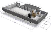 Планировка включает в себя 4 помещения: большую комнату, где можно выделить кухонную зону, парную, душевое помещение (санузел) и предбанник. Планировку можно переработать в соответствии с пожеланиями Клиента.