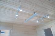 Входит в стоимость. Включает светильники в каждом помещении, вводный автомат, негорючий провод в парную, розетка в комнате отдыха (в банях-бочках розетка устанавливается по требованию).