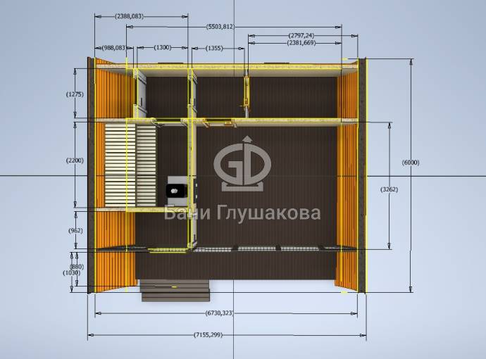 При желании построить баню Танк просьба с изменениями обращаться непосредственно к Дмитрию Глушакову и ваш проект будет визуализирован и спроектирован под требования конструкции