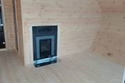 Если топка через стену то можно сделать красивые наличники из брашированной доски с полочкой на верху,