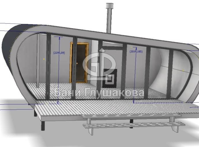 При желании построить баню Танк просьба с изменениями обращаться непосредственно к Дмитрию Глушакову и ваш проект будет визуализирован и спроектирован под требования конструкции