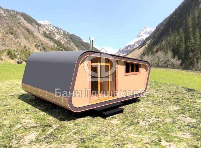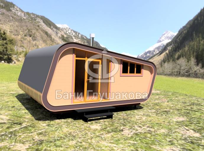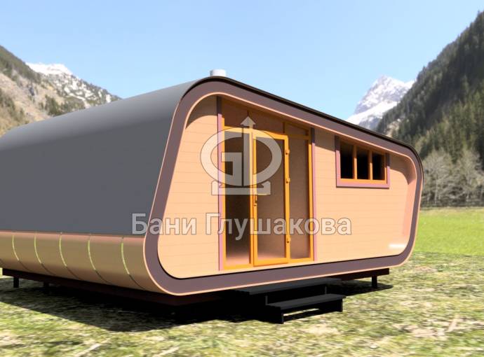 Новый весенний проект бани 2022! Мы модифицировали форму бани «Танк», немного подняли угол крыши, чтобы получить совершенно потрясающий эффектный внешний вид!