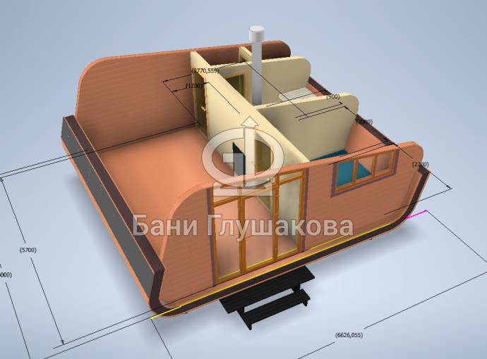 При желании построить баню Танк просьба с изменениями обращаться непосредственно к Дмитрию Глушакову и ваш проект будет визуализирован и спроектирован под требования конструкции