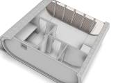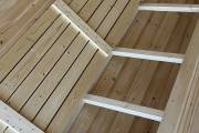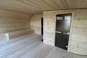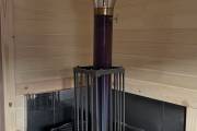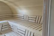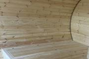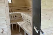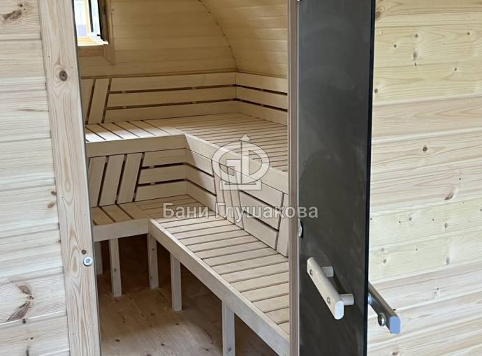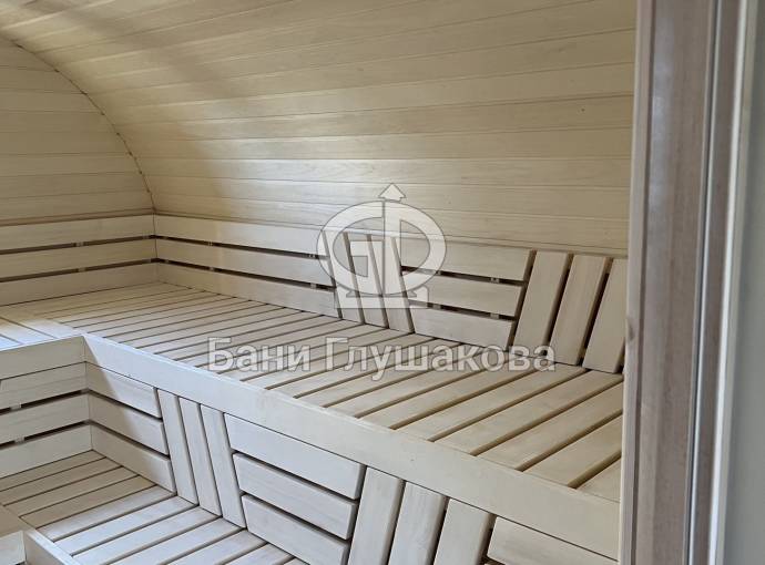 Внутреннее оснащение зависит от выбранной комплектации. Как правило, устанавливаются душевая система, печь с выносной топкой и панорамным стеклом. Часто просят сделать встроенную мебель: шкафы, кухню, откидные скамьи. Также можно оборудовать санузел и повесить обливное устройство. Мы готовы рассмотреть все ваши пожелания и по возможности воплотить их в жизнь.