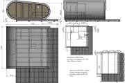 Этот проект бани «Танк» был изготовлен по индивидуальному запросу. Была задача построить эффектную панорамную баню с открытой террасой в виде подиума. Размер бани 6 на 6 метров, вместе с террасой размер застройки 7,5 на 7,5 метров. Подробные размеры вы найдёте во кладке «План» под фотогалереей.
