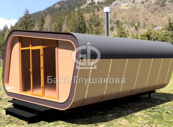 Новый весенний проект бани 2022! Мы модифицировали форму бани «Танк», немного подняли угол крыши, чтобы получить совершенно потрясающий эффектный внешний вид!