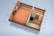 Планировка включает в себя комнату отдыха, парную, душ, бойлерную/санузел и спальню.