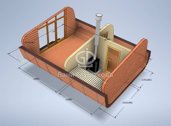 При желании построить баню Танк просьба с изменениями обращаться непосредственно к Дмитрию Глушакову и ваш проект будет визуализирован и спроектирован под требования конструкции