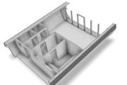 Установлен в помывочном отделении пластиковый герметичный поддон с сифоном для слива воды, в него вложен деревянный трапик (в планировках, где подразумевается душевое помещение). Ссылка на фото и видео