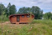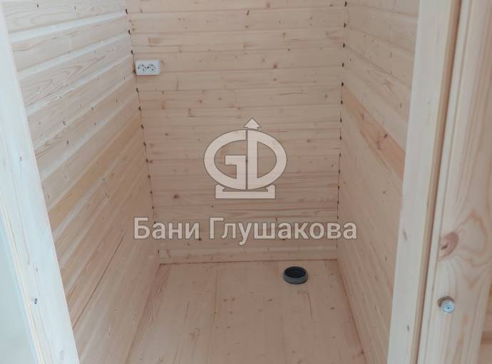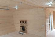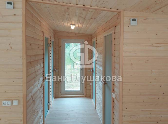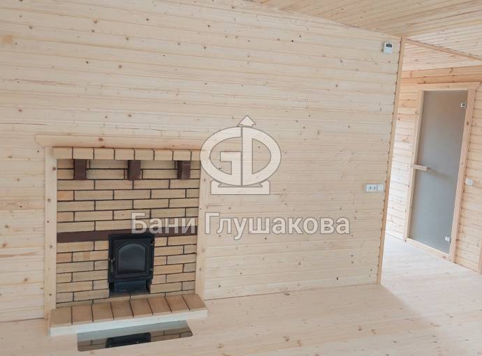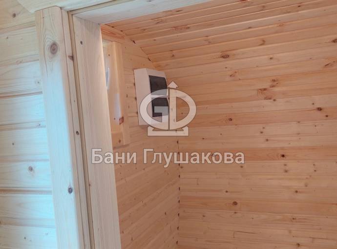 Интересна планировка. Есть большая комната отдыха, парная, санузел и кладовочка. По желанию Заказчика сделали два входа по разные стороны бани.