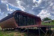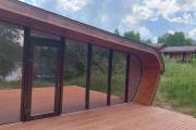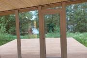Размер этой красотки 7 на 8,8 метров. Плюс ещё и открытая терраса-подиум с видом на реку — чистый восторг.