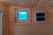 Можно заказать установку окон (только в каркасные варианты) размером 1470х570, открывающиеся если замена окна то +2500р а если дополнительное окно то +5000р, пример такой бани на видео