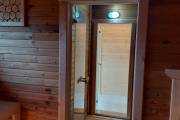 Можно установить один или более светильник у входной двери снаружи, подробнее по ссылке, в комплект входит покраска его в цвет окантовки бани, подключение на отдельный выключатель, светодиодная лампа. Стоимость 1700 рублей за штуку