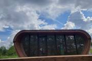 Главная фишка линейки «Армата» — разноуровневая высота. На этой бане она заметна особенно хорошо. Внешний вид фантастический! Снаружи баня покрашена сочетание Пинотекс «Тик» + «Палисандр».