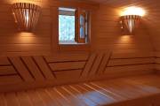 Можно установить один или более светильник у входной двери снаружи, подробнее по ссылке, в комплект входит покраска его в цвет окантовки бани, подключение на отдельный выключатель, светодиодная лампа. Стоимость 1700 рублей за штуку