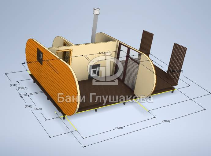 Размеры, планировка, комплектация — всё это оговариваемо. Давайте вместе создадим классный проект! Пишите лично Дмитрию Глушакова на почту perevoznyebani@yandex.ru с пометкой «Баня Танк с террасой 3м».