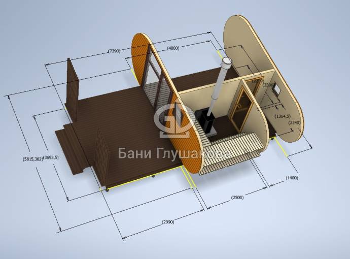 При желании построить баню Танк просьба с изменениями обращаться непосредственно к Дмитрию Глушакову и ваш проект будет визуализирован и спроектирован под требования конструкции