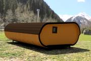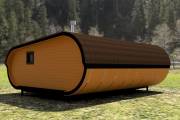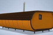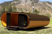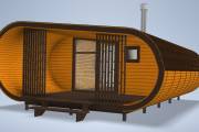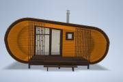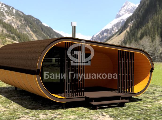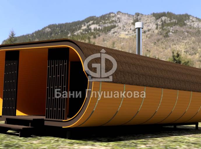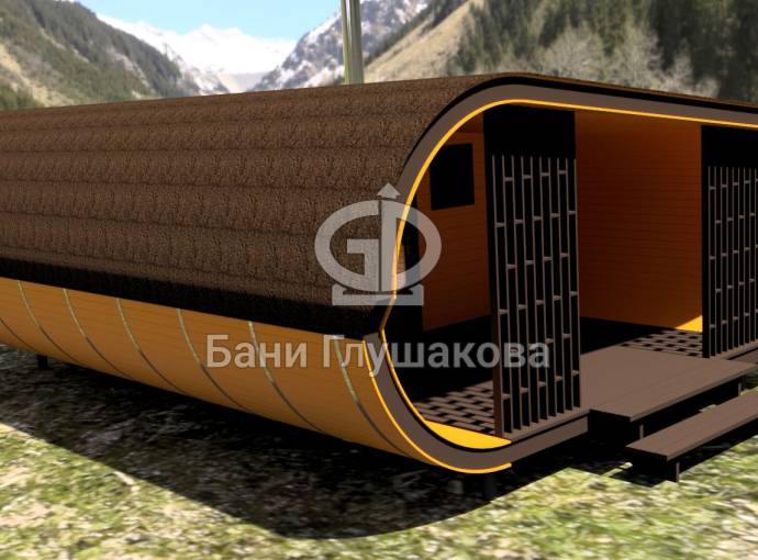 Сама баня изготавливается по уникальной каркасной технологии, которая позволяет реализовывать такую идеальную округлую форму.