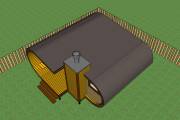 Новый проект в линейке бань «Танк» — большая стационарная баня оригинальной формы с террасой и особым оформлением печи.
