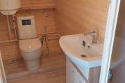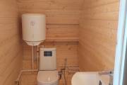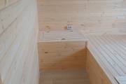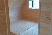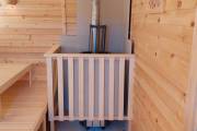 Есть небольшая спальня с подиумом под кровать. В санузле расположены унитаз, раковина и душевое оборудование. Есть душ и, конечно же, парная.