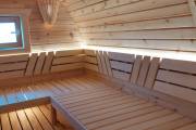 Установить красивые светильники, которые украсят вашу парную, ссылка на видео, а также можно сделать раздельное включение под полками и верхними светильниками ссылка на видео.