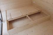 По просьбе заказчика была установлена встроенная кровать-подиум с местом для хранения.