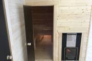 Можно установить один или более светильник у входной двери снаружи, подробнее по ссылке, в комплект входит покраска его в цвет окантовки бани, подключение на отдельный выключатель, светодиодная лампа. Стоимость 1700 рублей за штуку