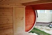 Можно установить один или более светильник у входной двери снаружи, подробнее по ссылке, в комплект входит покраска его в цвет окантовки бани, подключение на отдельный выключатель, светодиодная лампа. Стоимость 1700 рублей за штуку