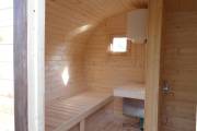 На фотографиях всего лишь один из вариантов этой бани, вы же можете сами варьировать комплектацию. Снаружи можно покрасить в любой цвет из палитр красок БиоТекс и Pinotex.
