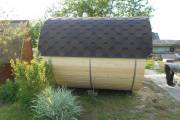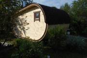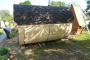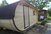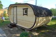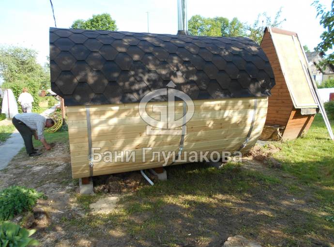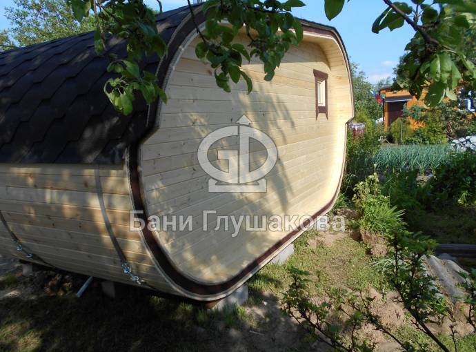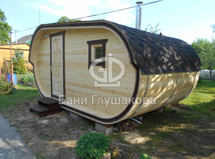 Размер этой модели 4,2х3, что, к сожалению, не позволяет привезти ее в готовом виде. «Танк 3» собирается на участке клиента. Сборка занимает от 7 дней в зависимости от погодных условий и наличия/отсутствия фундамента. В стоимость включена полная отделка под ключ с установкой печного и душевого оборудования.