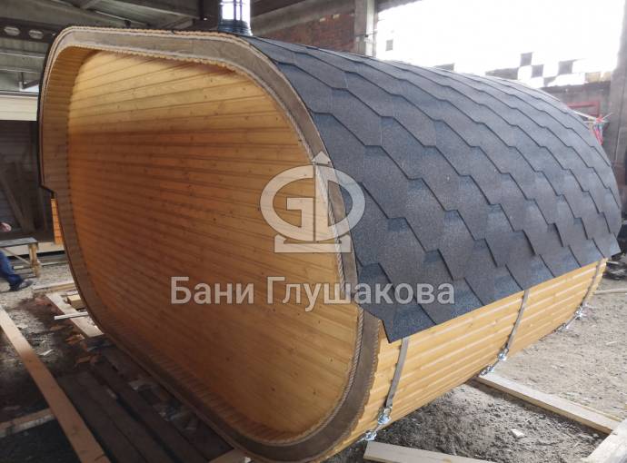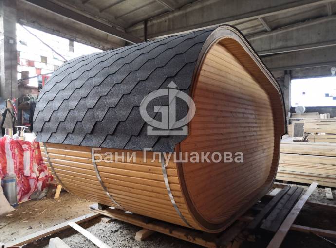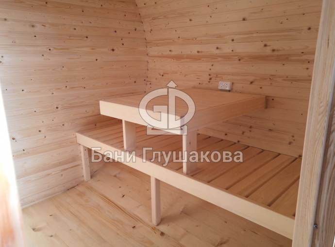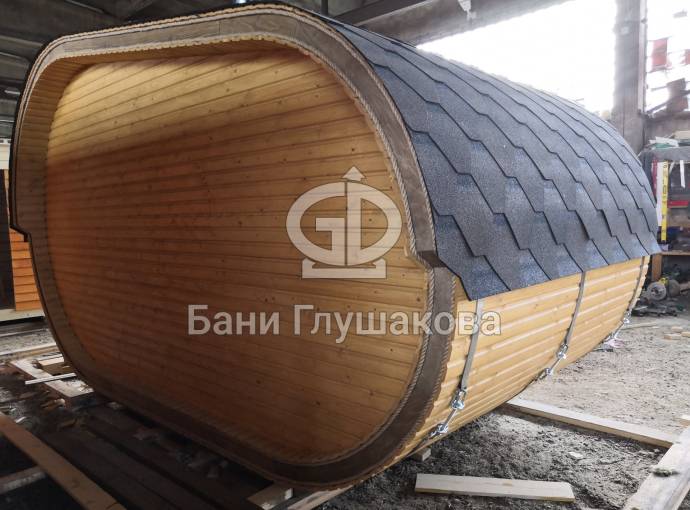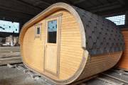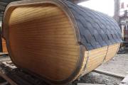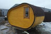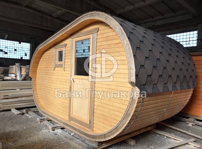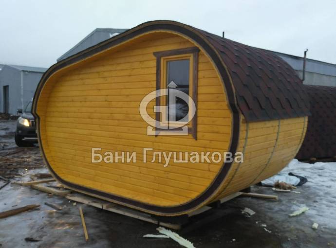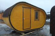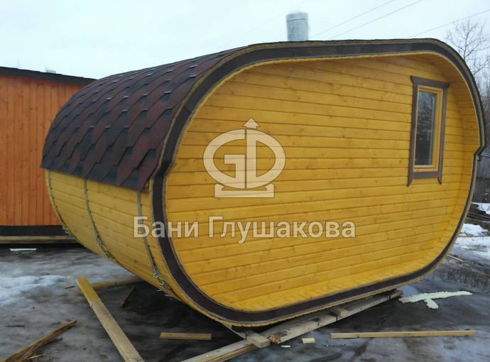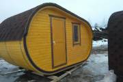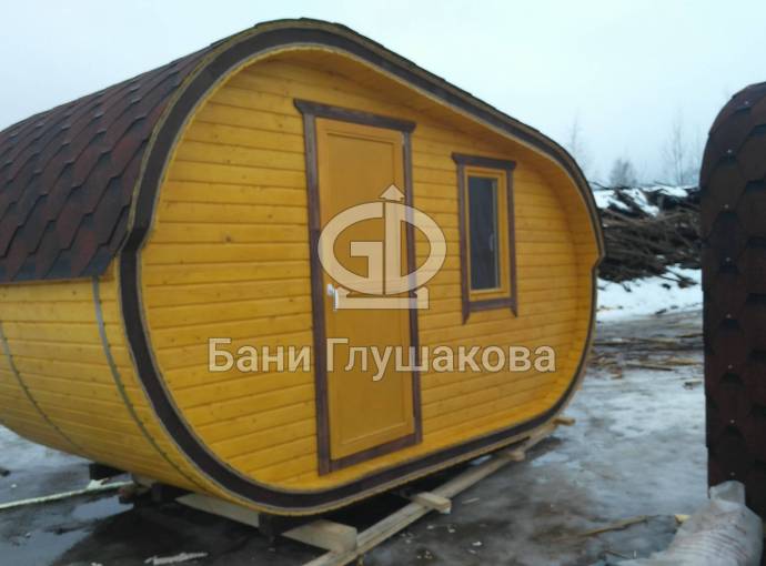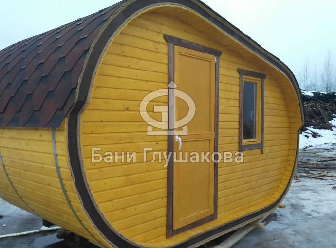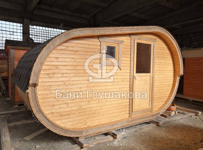 Представляем вам нетрадиционный вариант бани бочки «Танк 4» — модель в виде гусеницы танка. Необычная форма поневоле заставляет обращать на себя внимание.