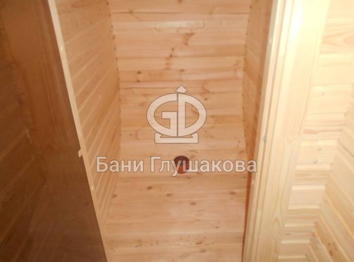 Установлен в помывочном отделении пластиковый герметичный поддон с сифоном для слива воды, в него вложен деревянный трапик (в планировках, где подразумевается душевое помещение). Ссылка на фото и видео