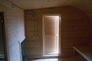 Можно установить один или более светильник у входной двери снаружи, подробнее по ссылке, в комплект входит покраска его в цвет окантовки бани, подключение на отдельный выключатель, светодиодная лампа. Стоимость 1700 рублей за штуку