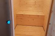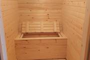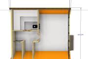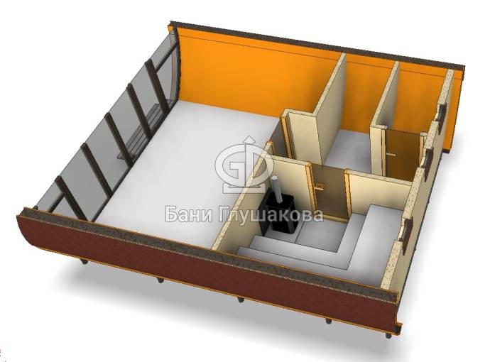 В планировке есть небольшая прихожая, комната отдыха, парная, душ, помещение для душевой системы, санузел.