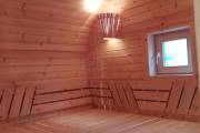 Можно установить один или более светильник у входной двери снаружи, подробнее по ссылке, в комплект входит покраска его в цвет окантовки бани, подключение на отдельный выключатель, светодиодная лампа. Стоимость 1700 рублей за штуку