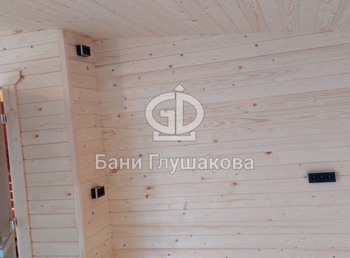 Входит в стоимость. Включает светильники в каждом помещении, вводный автомат, негорючий провод в парную, розетка в комнате отдыха (в банях-бочках розетка устанавливается по требованию).