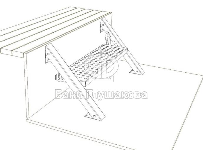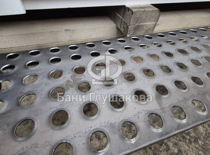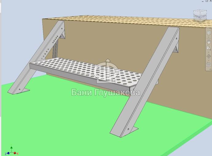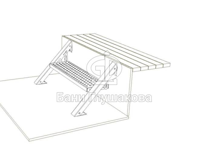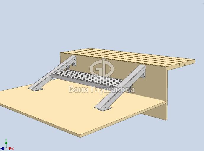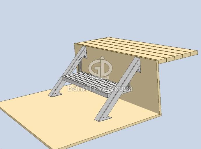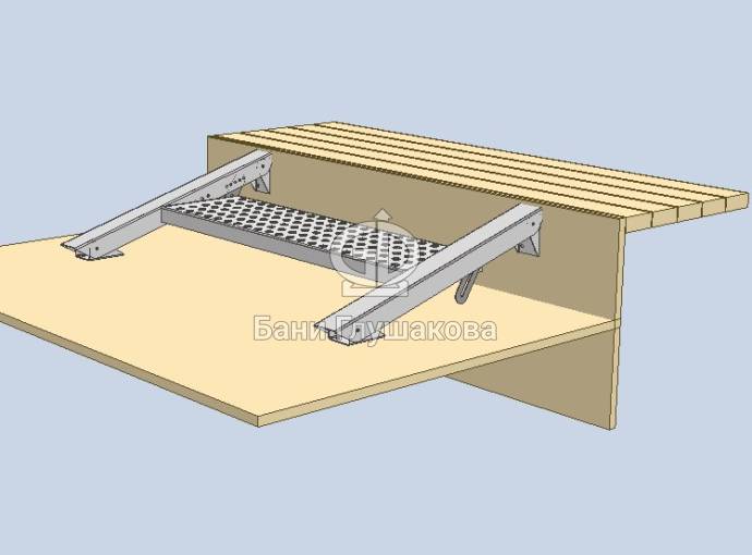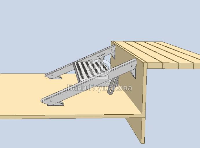 Она надёжно крепится к стенам бани и, при наличии возможности, к напольной поверхности. Уклон регулируется по высоте под конкретную баню.