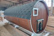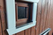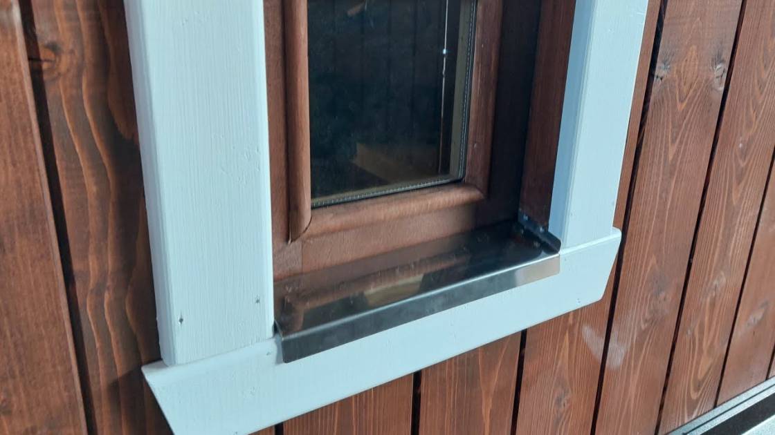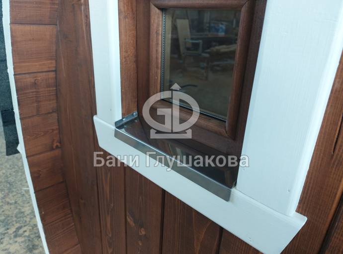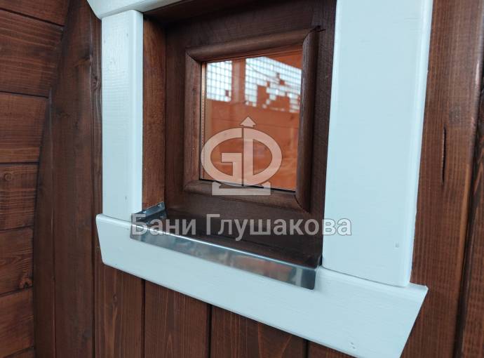 В базовую комплектацию наших бань-бочек с июля 2023 года входят металлические откосы из нержавеющей стали на форточках в банях-бочках. Они защищают окошко от попадания влаги при боковом ветре. С металлической накладкой форточка прослужит гораздо дольше.