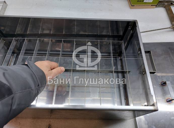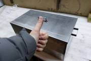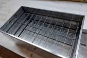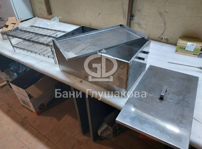 Металлическая коптильня нашего производства из стали 1,2 мм с двухуровневой системой установки решёток. На самой коптильне установлено дополнительное ребро жёсткости. Верхняя крышка герметично закрывает коптильню.