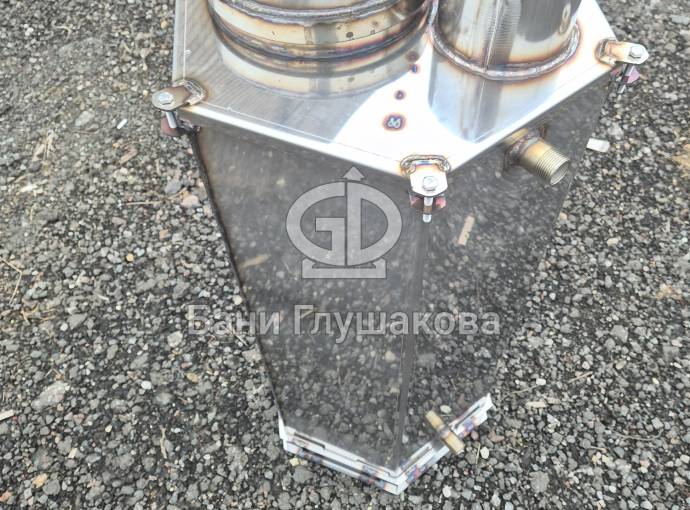 Простая компактная печь из нержавеющей стали AISI 430 для подогрева бассейна. Конструкция продуманная и добротная – все детали сделаны так, что тут нечему ломаться.