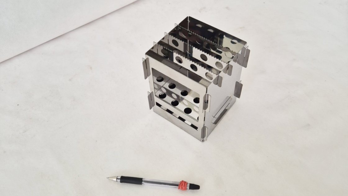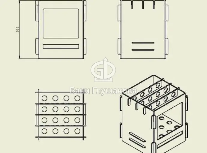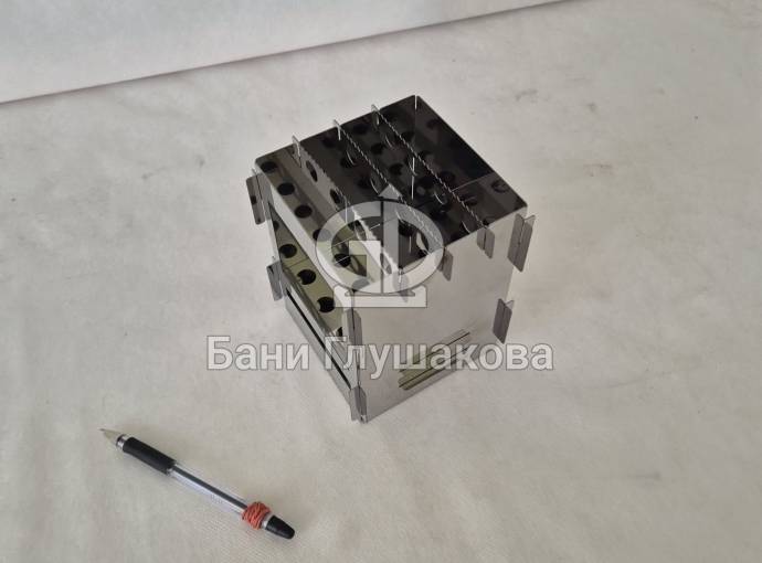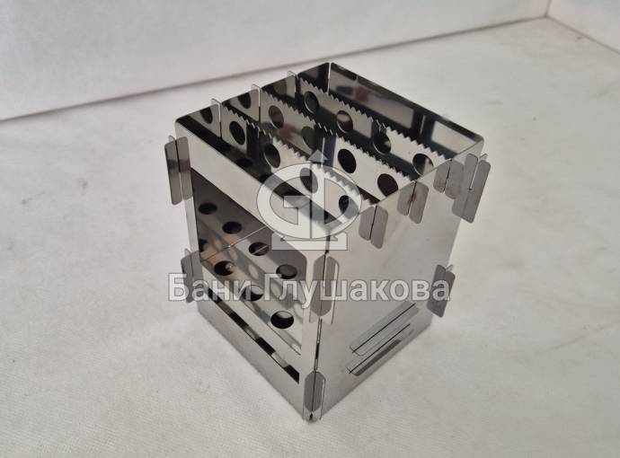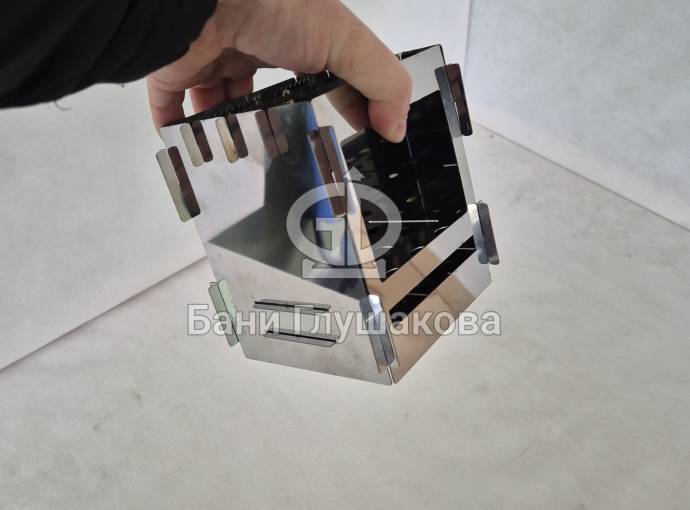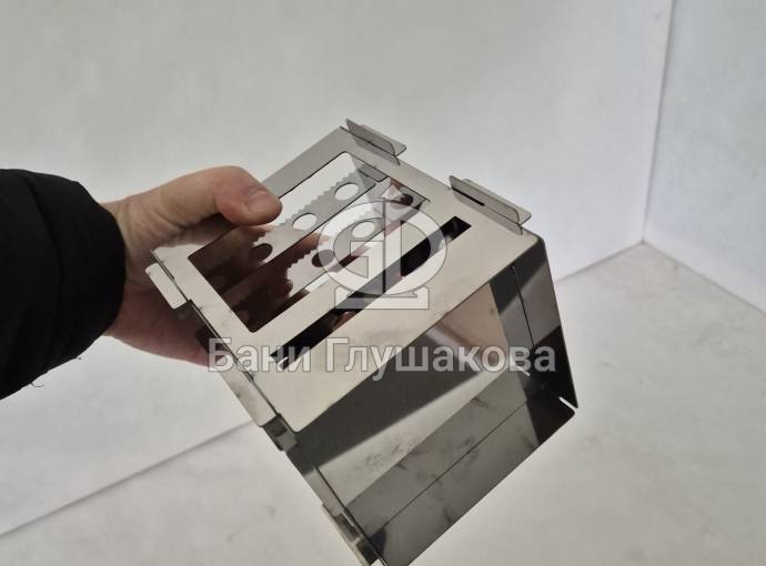 Компактная лёгкая походная печь Щепочница изготовлена из нержавеющей стали прямоугольной формы. Лёгкая сборка.