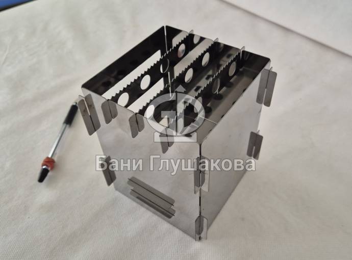 Печь походная разборная туристическая Щепочница нержавейка 0,8мм Прямоугольная