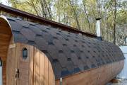 В нашей линейке бань бочек «Улитка» пополнение — теперь мы строим большие пятиметровые бани на три отделения: предбанник, душ и парная. В такой бане устанавливается автономная душевая система с бойлером.
