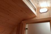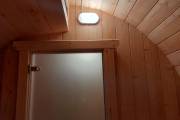 Можно установить один или более светильник у входной двери бани бочки снаружи, подробнее по ссылке, в комплект входит покраска его в цвет окантовки бани, подключение на отдельный выключатель, светодиодная лампа. Стоимость 1700 рублей за штуку