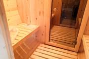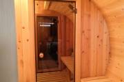 Центр внимания, конечно, — парная. Удобная, аккуратная и очень уютная благодаря оригинальному панорамному окну в верхней части бани. Естественное освещение создает неповторимую атмосферу в сауне. Чтобы посмотреть новую «Супер» баню бочку своими глазами, позвоните нам и уточните наличие на выставочной площадке в Москве или Санкт-Петербурге.