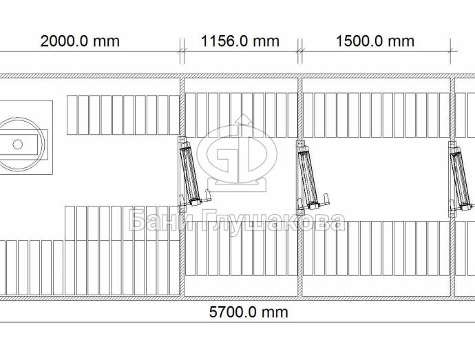 Можно установить насосную станцию, бойлер, бак, душ, устанавливается как в душевой комнате так и в маленькой бане, но уже слева или с права в комнате отдыха, а душ выводится в этом случае в парную.