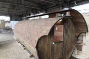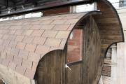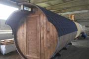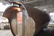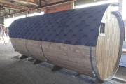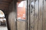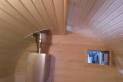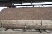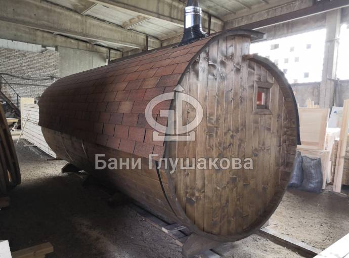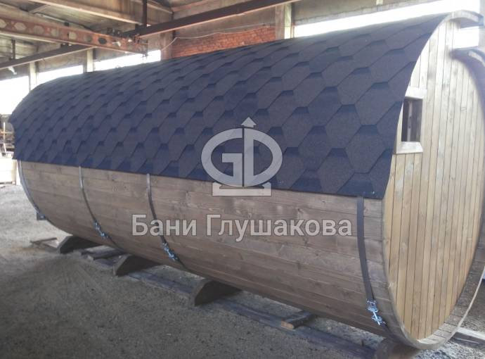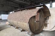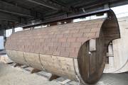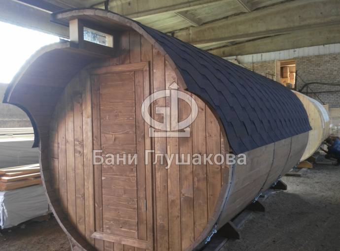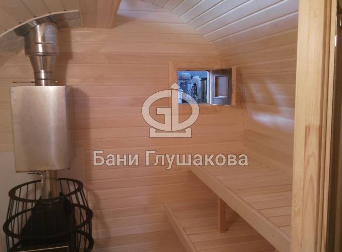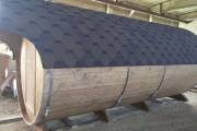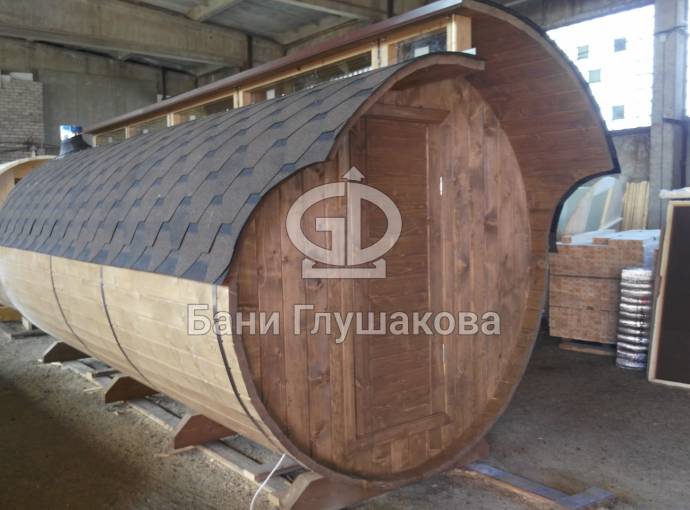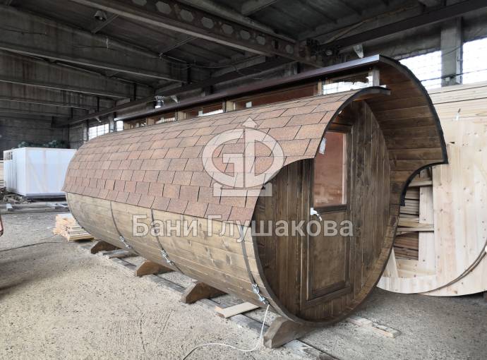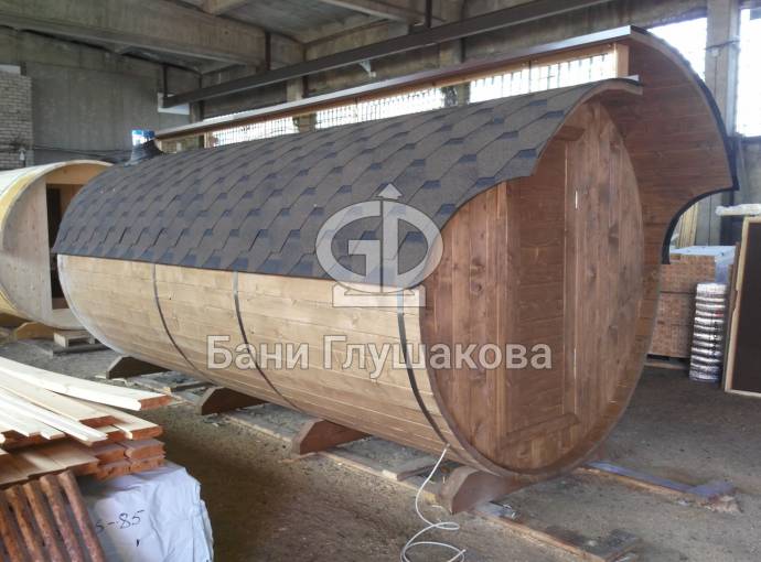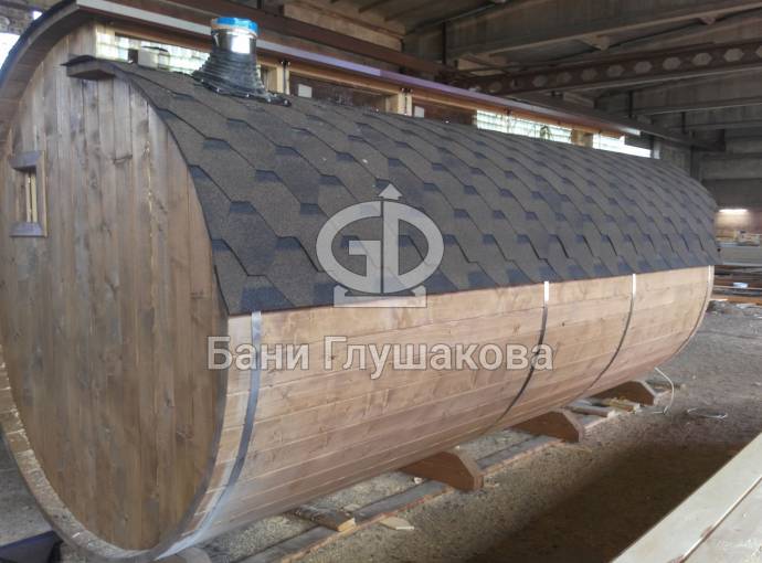 На фотографиях «Улитка» собрана из специально состаренной брашированной доски, однако от этой опции можно отказаться и заказать баню, например, из кедра. Цвет также остается на усмотрение клиента. Мы покрасим вашу баню бочку в любой цвет.