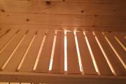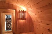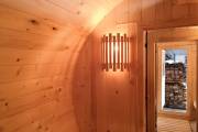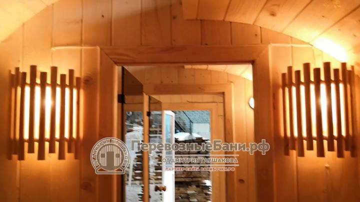 Можно установить один или более светильник у входной двери бани бочки снаружи, подробнее по ссылке, в комплект входит покраска его в цвет окантовки бани, подключение на отдельный выключатель, светодиодная лампа. Стоимость 1700 рублей за штуку
