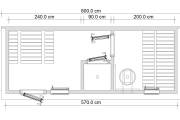 Можно заказать установку окон (только в каркасные варианты) размером 1470х570, открывающиеся если замена окна то +2500р а если дополнительное окно то +5000р, пример такой бани на видео