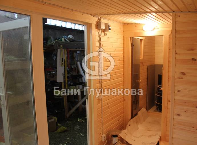 Наверное, не будем оценивать эту баню, просто покажем, ЧТО можно сделать практически из любой каркасной бани. Пусть эти фотографии послужат примером, образцом для ваших фантазий. Присылайте желаемые изменения в наших стандартных банях, и мы постараемся сделать то, что вы хотите.